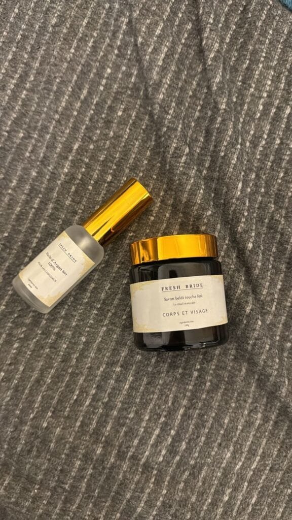 Le projet Fresh Bride s’inspire des rituels de beauté traditionnels marocains, notamment ceux adoptés par les futures mariées. Ces dernières, dans les traditions anciennes, utilisaient des produits locaux tels que le savon artisanal et le henné pour préparer leur peau. Dans une démarche de fusion entre tradition et modernité, l’équipe de Fresh Bride a intégré des produits naturels tels que le gommage enrichi avec عكر الفاسي (coquelicot en poudre), reconnu pour ses bienfaits esthétiques. La particularité de leurs créations réside dans leur composition 100 % naturelle et leur fabrication entièrement artisanale.
